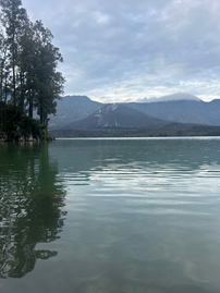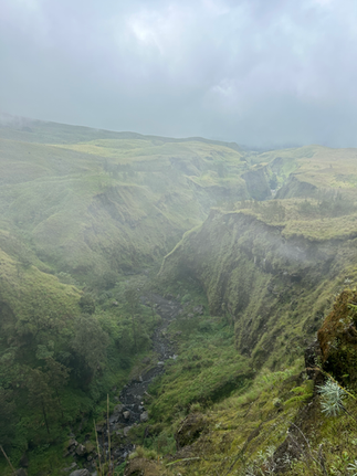 Third day of the hike: This day offers some of the most stunning views of the volcano and the lake, as shown in the pictures. The vegetation is lush, with thick grass and trees all around. Apparently, boars and bears roam during the night. We began the hike at around 6 AM, I think, and started by climbing an elevation of 600 meters over about 3 hours. After that, it was another 4 hours to the gate. It started raining, and another German girl and I were the last ones behind, with, of course, one of the guides acting as a sweeper. Unfortunately, he is in his 40s and struggling with knee issues. Additionally, my hemorrhoids were causing more pain, and it began to rain. Since we were supposed to catch our transportation, our lead guide suggested we walk quickly as we were running late. This prompted me to start running on the wet ground in the rain, which was fun. Eventually, I caught up with the others and was almost completely exhausted. Due to my hemorrhoids, I rested in the same village for the next two days.